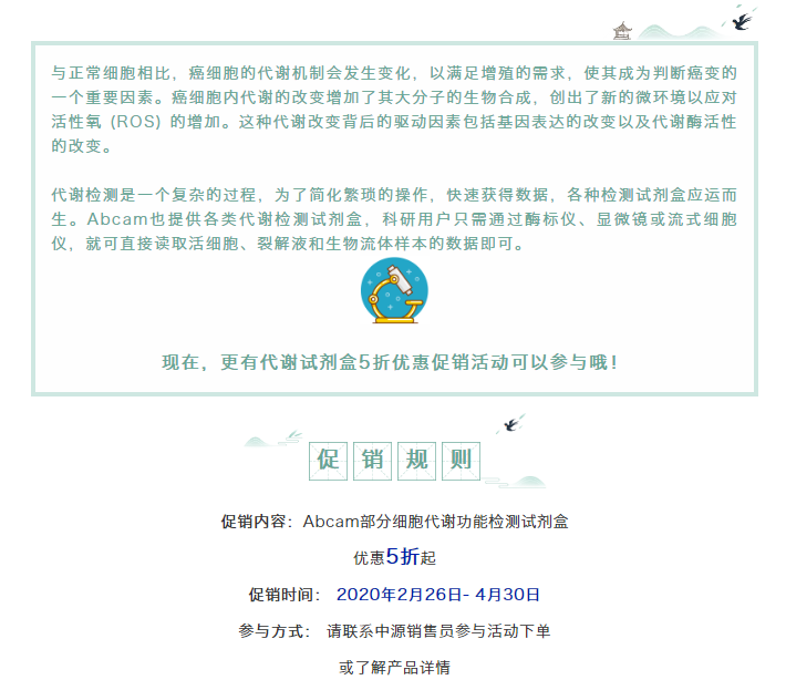 Abcam部分细胞代谢功能检测试剂盒,优惠5折起!
