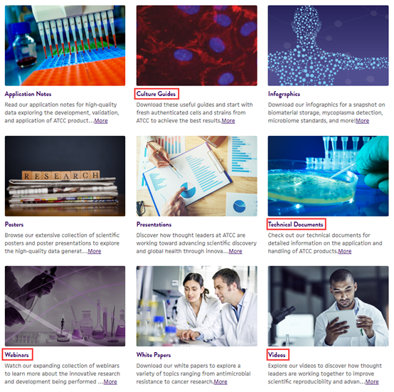 或直接通过:进入学习中心。1)进入“Culture Guides”中心(),可获取ATCC各类产品的培养指南;
