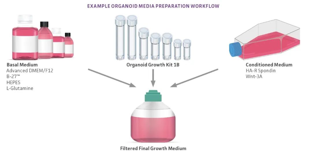 这些试剂盒包含最昂贵和最繁琐的添加剂和试剂,减少了制备培养基所需的时间和精力,并确保类器官的成功生长。