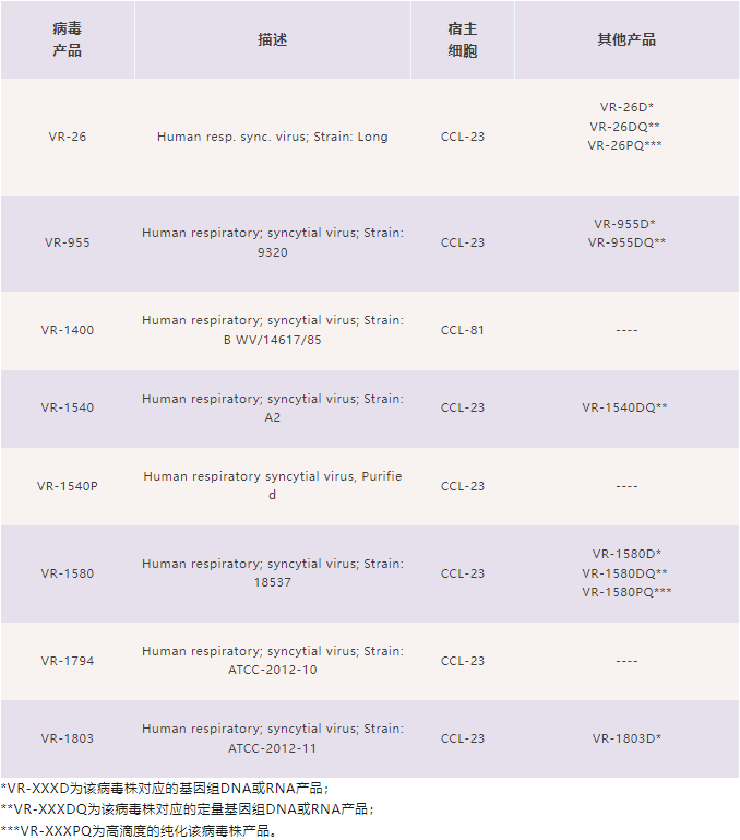 ATCC作为全球范围的生物资源收藏中心,致力于向全世界公布其获取、鉴定、保存和开发的生物标准品,以促进科学研究的检测、应用和发展。目前ATCC收藏有与RSV研究相关的一些资源,我们做了如下整理,可以作为基础研究、疫苗研究和疾病鉴别诊断等的相关材料。