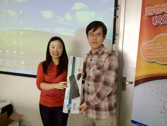 讲座最后,依然是我们最激动人心的抽奖环节。每一位到场的老师都获得一副精致的中原生物扑克牌,此外,我们还现场抽取了无线键鼠,恭喜得奖的幸运儿: