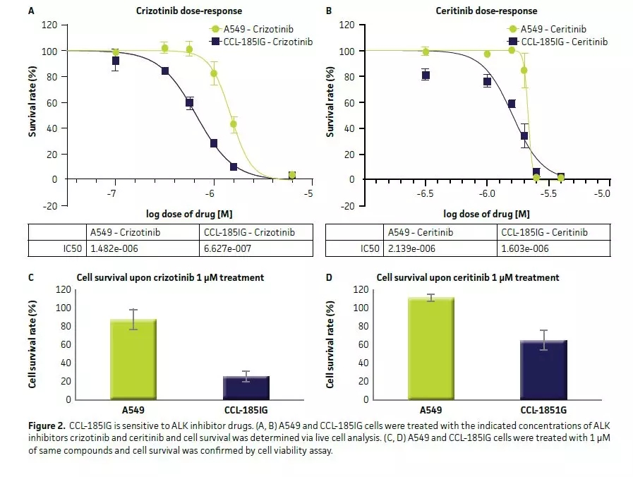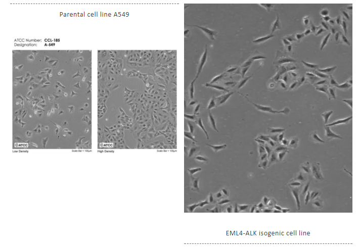 ATCC利用CRISPR / Cas9技术成功构建了EML4-ALK融合基因A549细胞。首先通过Cas9对EML4和ALK基因中的适当位点进行精确切割,通过细胞自身的同源DNA修复系统创造了包含EML4-ALK融合基因A549细胞,为癌症筛查诊断和新药筛选提供了强有力的细胞模型。