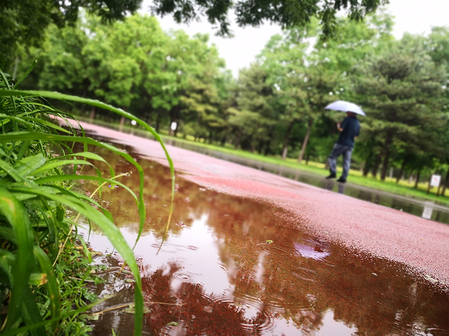 在雨水的冲刷下,花草、树木都彰显出自己独特的颜色。