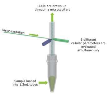 Muse®专利的微毛细管液流系统,带来高性能的细胞分析结果的同时,样本需要量只有传统流式技术的1/10,为您节省宝贵的科研样本。基于激光技术的荧光检测能对每个细胞进行多达3参数的分析结果。